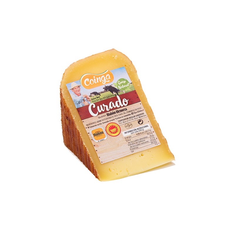 Productor local Formatge Mahon-Menorca curat Coinga 1/80 peça 320g.aprox 0,00 (0 vots) Formatge curat Coinga amb Denominació d'Origen Mahón-Menorca.-Premiat al WORLD CHEESE AWARD 1/80 peça 320g.aprox | 6,80 € 1/4 peça 620g.aprox. | 13,50 € 1 2 3 4 5 6 7 8 9 10 Elaboració 6,80 € (IVA incluit) Elaborat amb llet pasteuritzada de les vaques de les nostres granges repartides per tota Menorca. Sabor intens i aromàtic. Ideal com a aperitiu o postres.